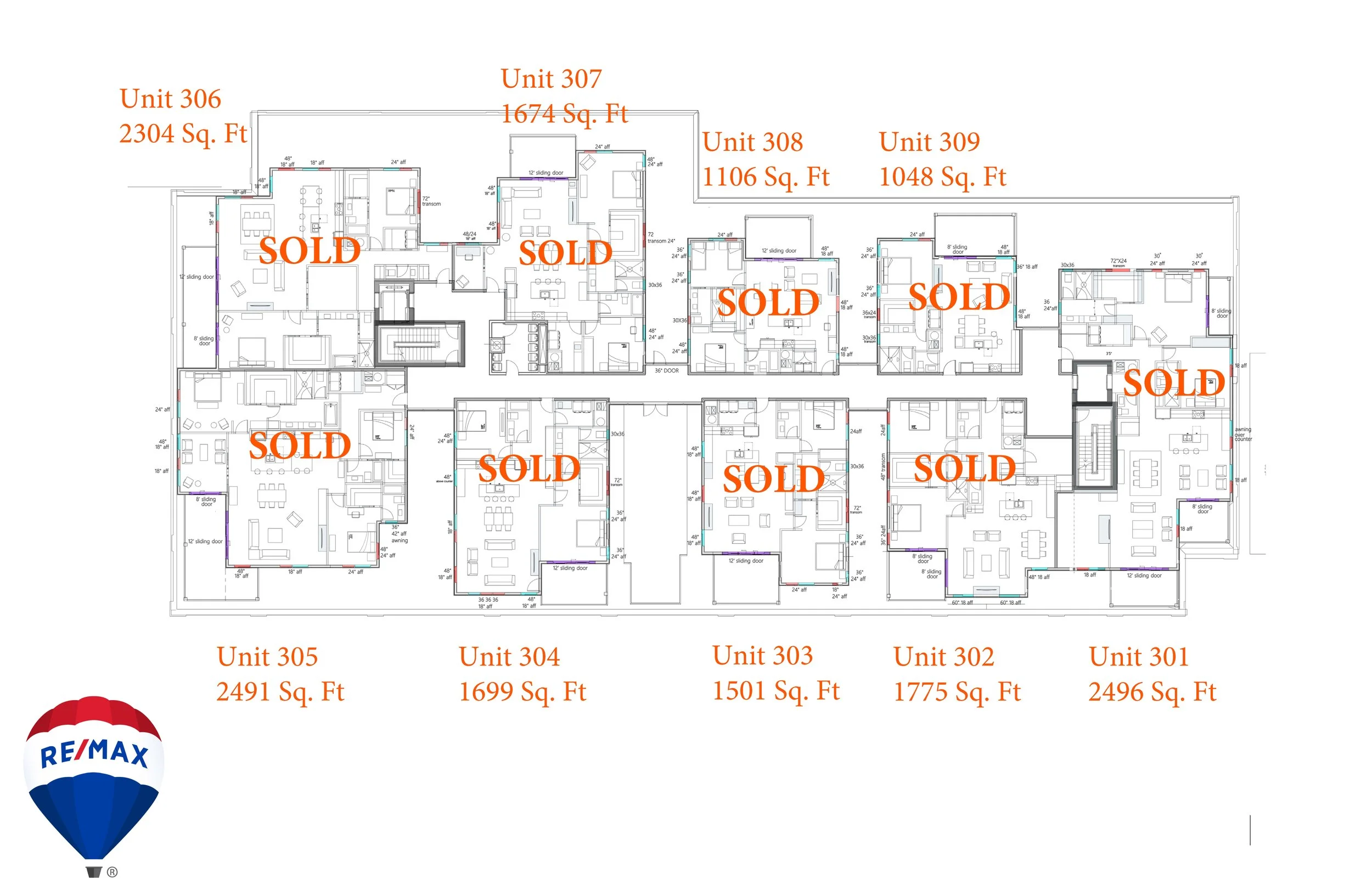 Units Available Floor 3 3rd floor is sold out!!! Floor 4 REMAINING 4th floor units 403 - 1501 Sq ft 404 - 1699 Sq ft Floor 5 Remaining 5th floor units502 - 1450 SQ Ft 503 - 1501 Sq ft 504 - 1699 Sq ft